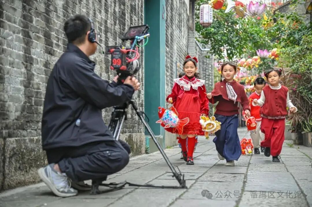 拍摄现场:英歌舞小女孩庄恩琪和孩子们奔跑在沙湾古镇车陂街