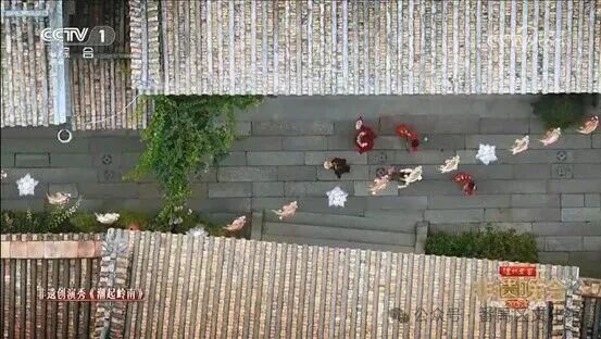 镜头跟随着孩子们奔跑嬉戏在一盏盏的鱼灯下,最终停留在具有数百年历史的留耕堂前。