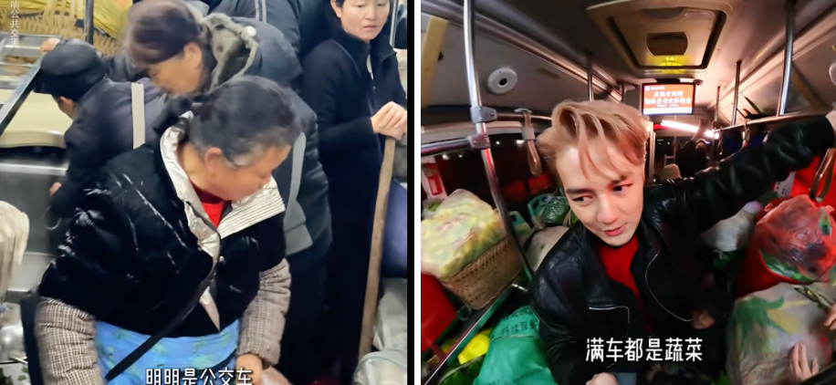 “这是我见过‘最暖的一台车’,明明是公交车却没有地方下脚,满车都是蔬菜,司机却还说‘你们不运货的就不能上’。这里是贵阳252路公交惠农专线。”