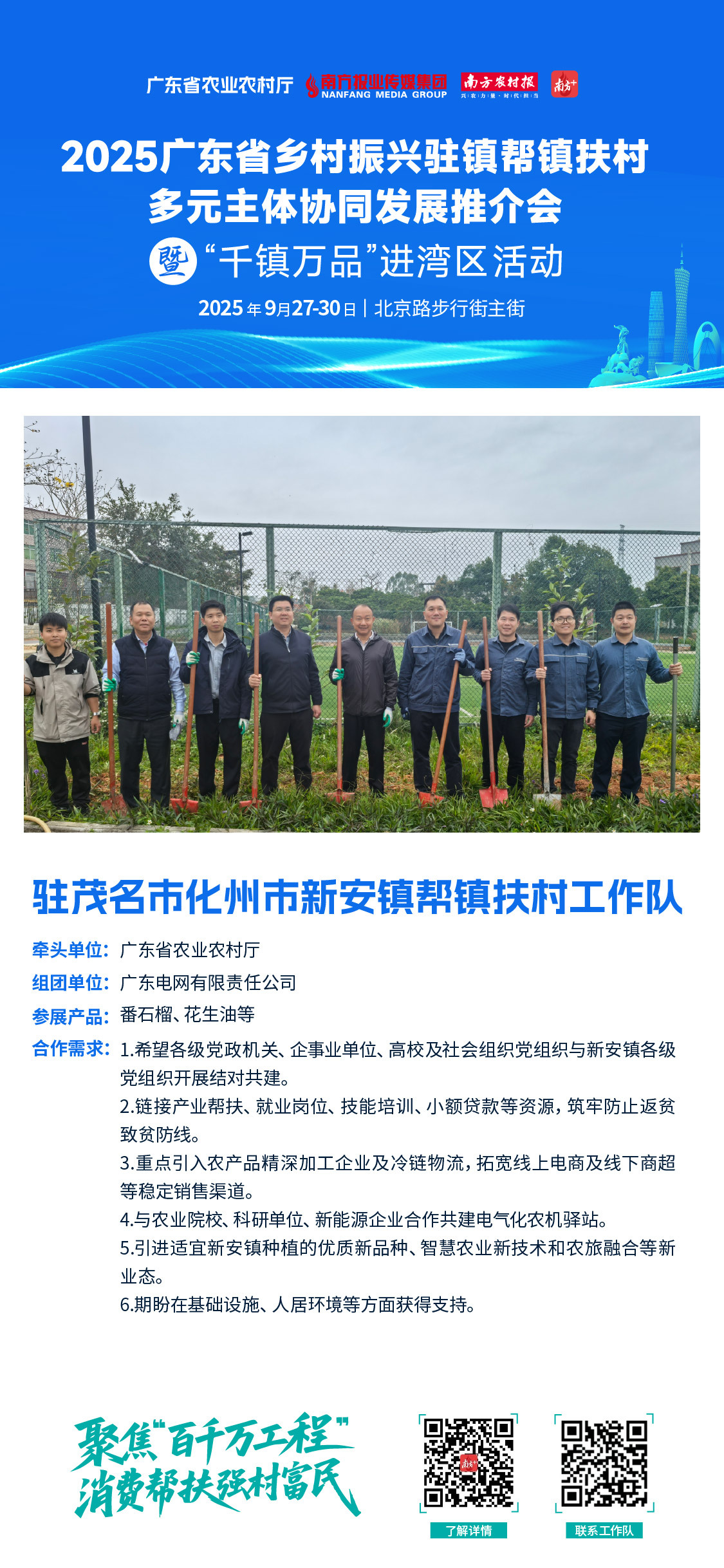 新安镇是广东省著名的番石榴种植专业镇,拥有数百年种植历史。2024年7月,由广东省农业农村厅与广东电网有限责任公司组成的工作队来到这里开展第二轮帮扶,以激活当地水果产业“基因”为核心,围绕番石榴种植业,构建起从品种引进、种苗繁育、标准化种植,到深加工、冷链储运、品牌营销的全产业链条,有力推动乡村产业提质增效。